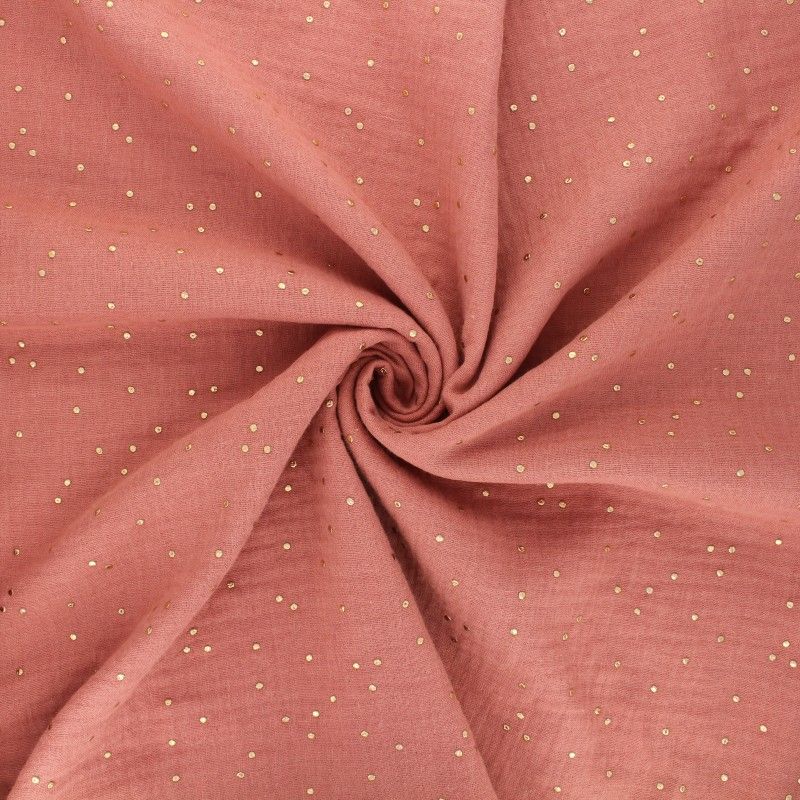 Qu'est-ce que c'est ? Le tissu double gaze est un tissu léger, doux et légèrement aérien. Il est construit à partir de deux fines couches de coton qui sont assemblées à intervalle régulier. Ces points forment un léger gaufrage sur l'ensemble du tissu.